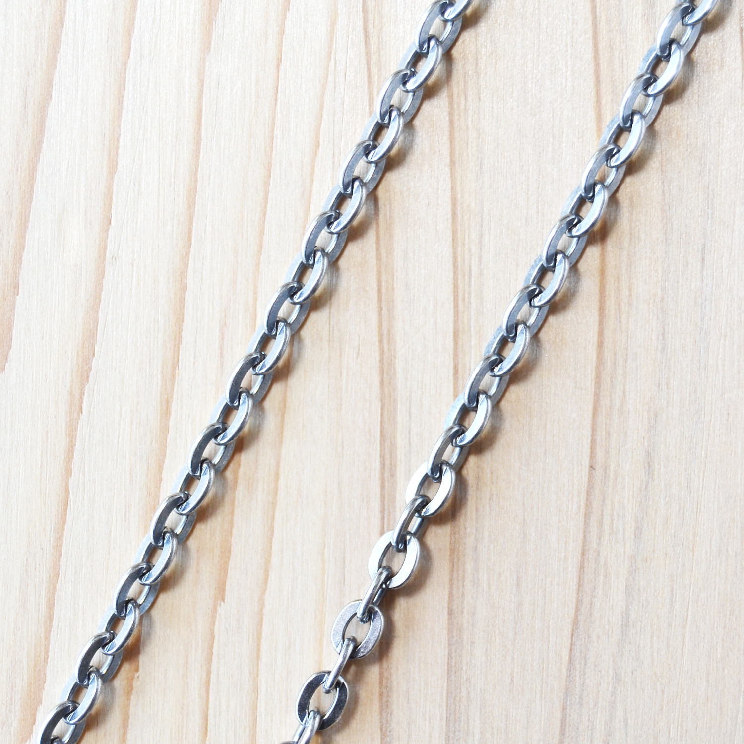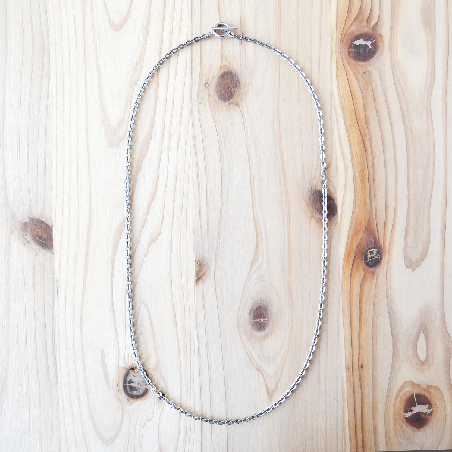 This is a silver-plated necklace made from 0.8mm brass wire, flattened to create a flat oval chain.